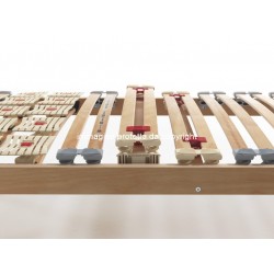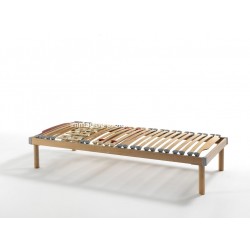 Rete Legno Telaio 70x25 in multistrato di faggio, regolatori di rigidità lombari ad anelli con 4 sottodoghe, 26 doghe multistrato 38x8, inserti in SEBS. Piedi diametro 70 mm. Angolari in fibra di vetro.