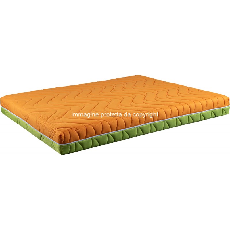 Materasso ideale per ragazzi in Poliuretano Bioflex® HR alta resilienza a celle aperte, 2 portanze differenziate, lato arancione soffice portanza 2.4 kpa, lato celeste rigido portanza 3.8 kpa. leggero e indeformabile. Altezza lastra 18 cm. Altezza materasso 20/21 cm. Cover tessuto bicolor in microfibra anti-pilling oppure stretch, sfoderabile e lavabile in lavatrice. Lastra a incastro assemblata senza utilizzo di collanti.