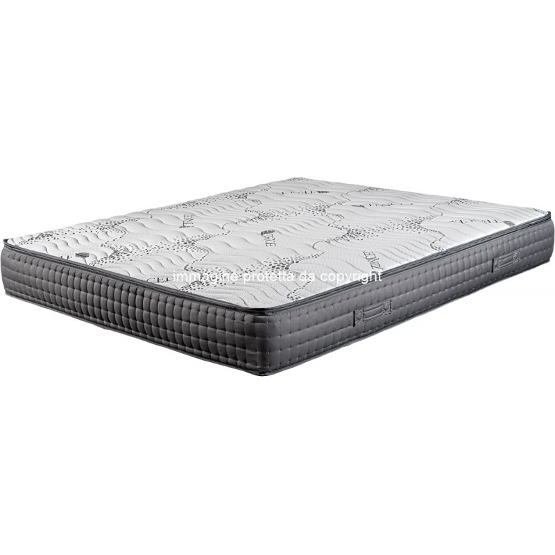 Molleggio Ortopedico Mini-Bonnel serie 300/600 molle biconiche in acciaio. Un lato soffice con 3 cm. Memory Foam e un lato più sostenuto. Box System con isolanti in feltro, poliestere e poliuretano.